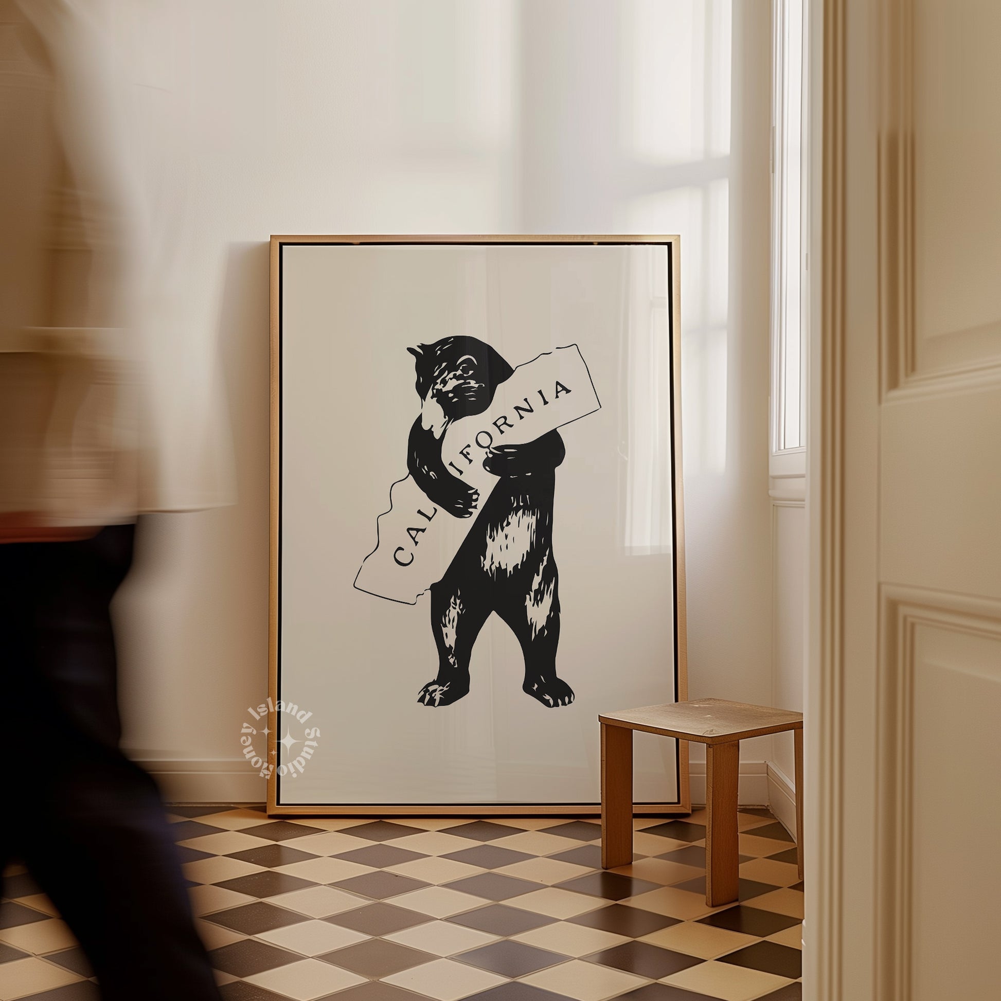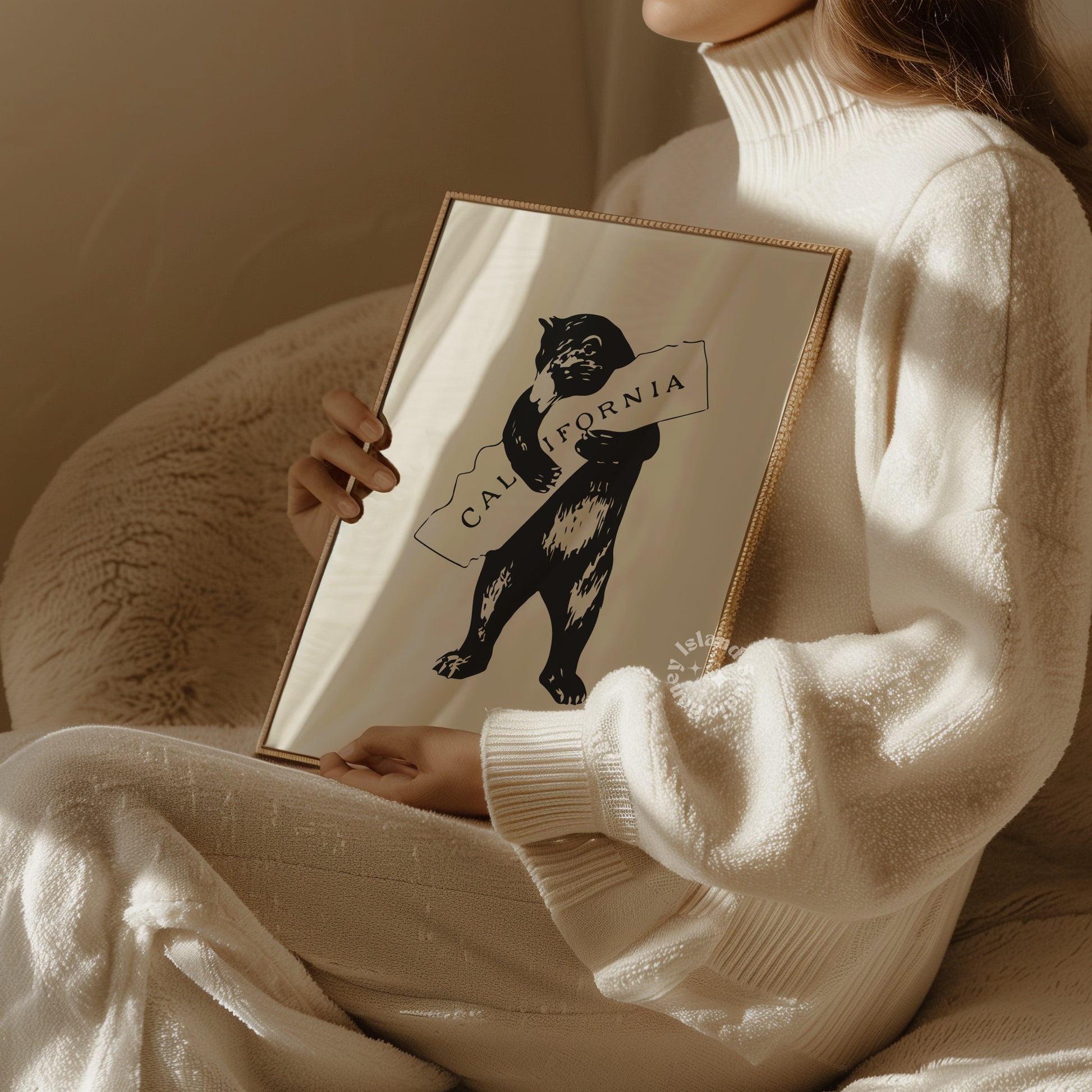 Stay cozy with Retro California Bear Hug! This neutral and timeless retro poster is perfect for showing off your California roots with an iconic bear print!