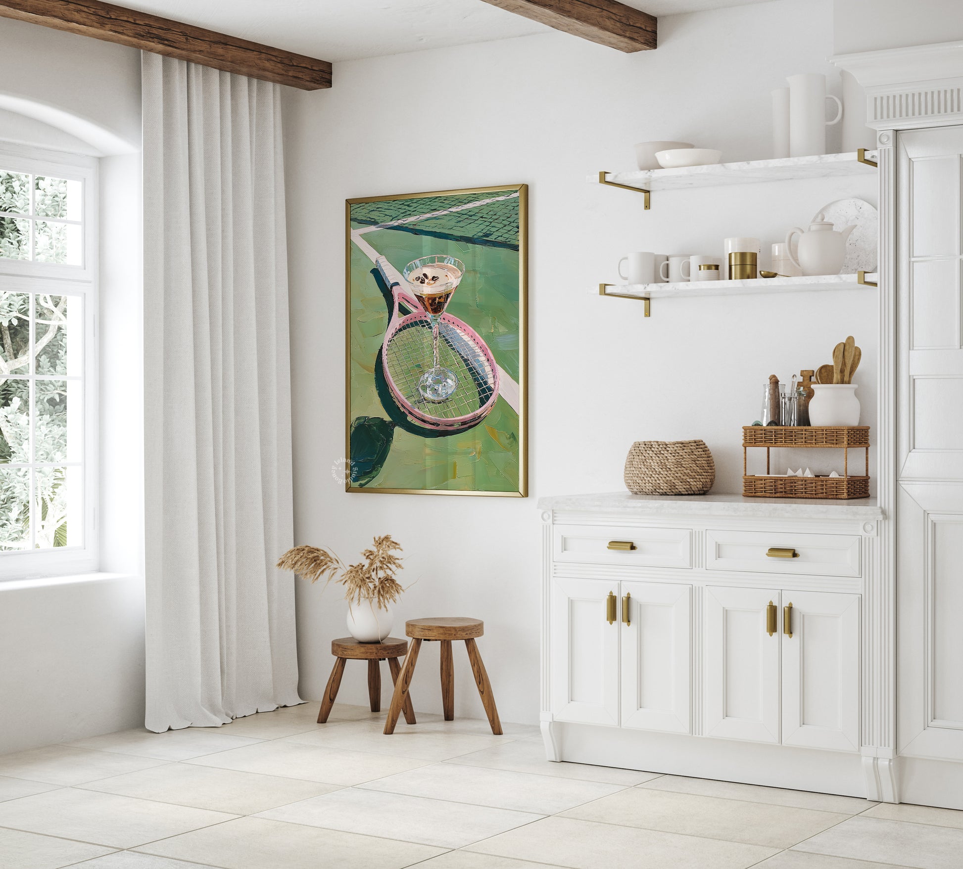 Serve up style and fun with this Tennis Racket Espresso Martini Art Print. Perfect for sports lovers with a taste for the unexpected, this playful print blends the energy of tennis with the charm of a classic espresso martini. Unframed for easy customization, itβs a quirky wall decor piece that adds personality and a dash of humor to any room.